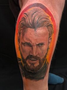 Richey ist hauptsächlich von seinen wunderschönen Aquarell/Watercolor Kombinationen bekannt. Unser junger Kollege experimentierte schon immer mit Portraits und realistischen Motiven und begann Realismus mit Aquarell zu betonen und zu kombinieren. Schnell waren seine Kunsterwke weit über die Landesgrenzen hinaus begehrt und bekannt. Inked Magazine (New York) postete seine Arbeiten und die Kunden kamen plötzlich aus allen Ländern und Ecken. Hier Ritchey´s latest Projekt - Captain America - in der Entstehungsphase zu sehen. Diesmal Color/Realistic. Wir sind dankbar dass Marc Ritchey viel Freiraum eingeräumt hat. Natürlich ist das hier noch nicht vollständig zu sehen - aber wir freuen uns schon auf die Fortsetzung.